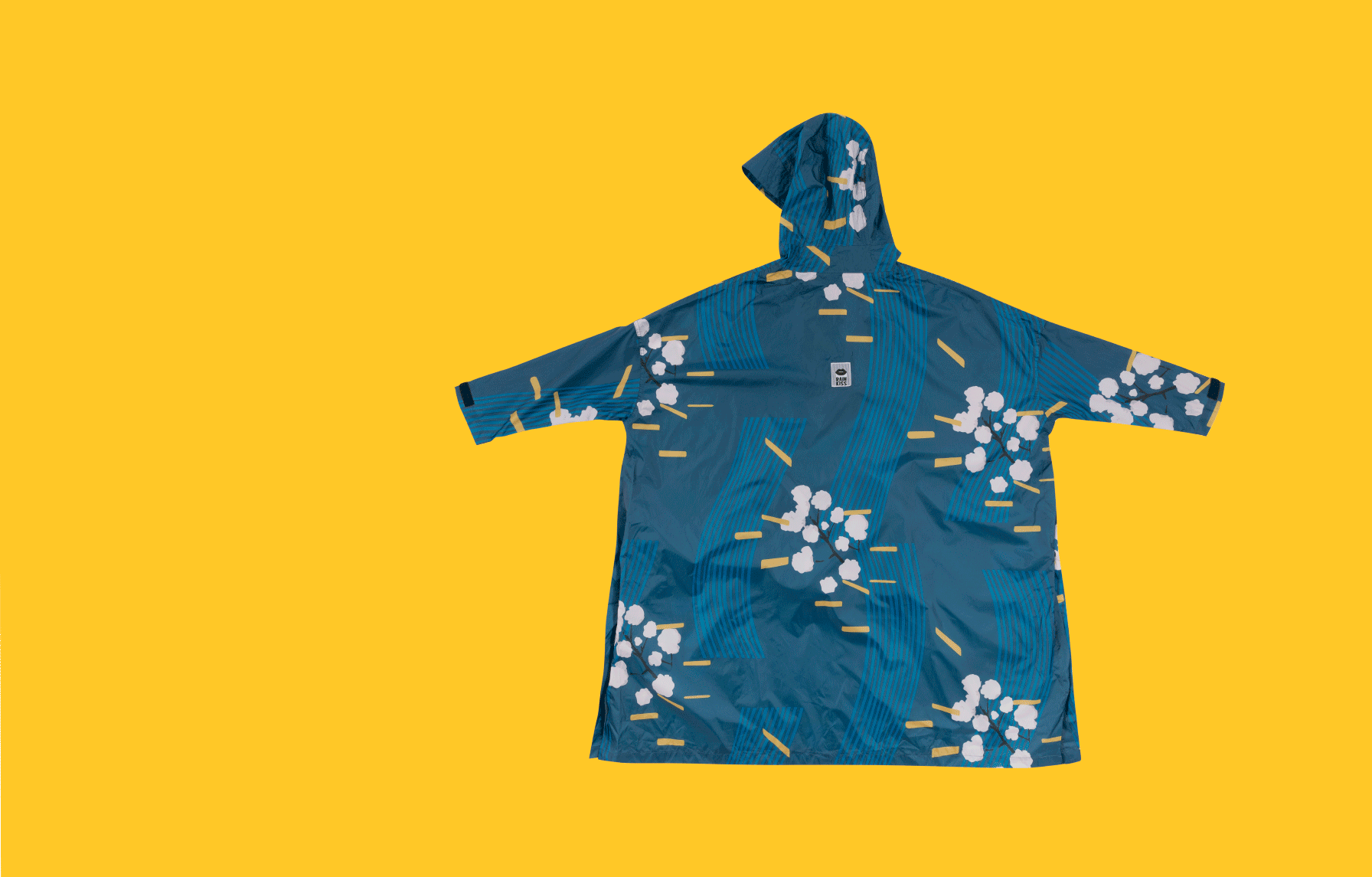 Rainkiss rain ponchos are made from 100% certified recycled polyester and uses a 100% PFAS free waterproof coating.