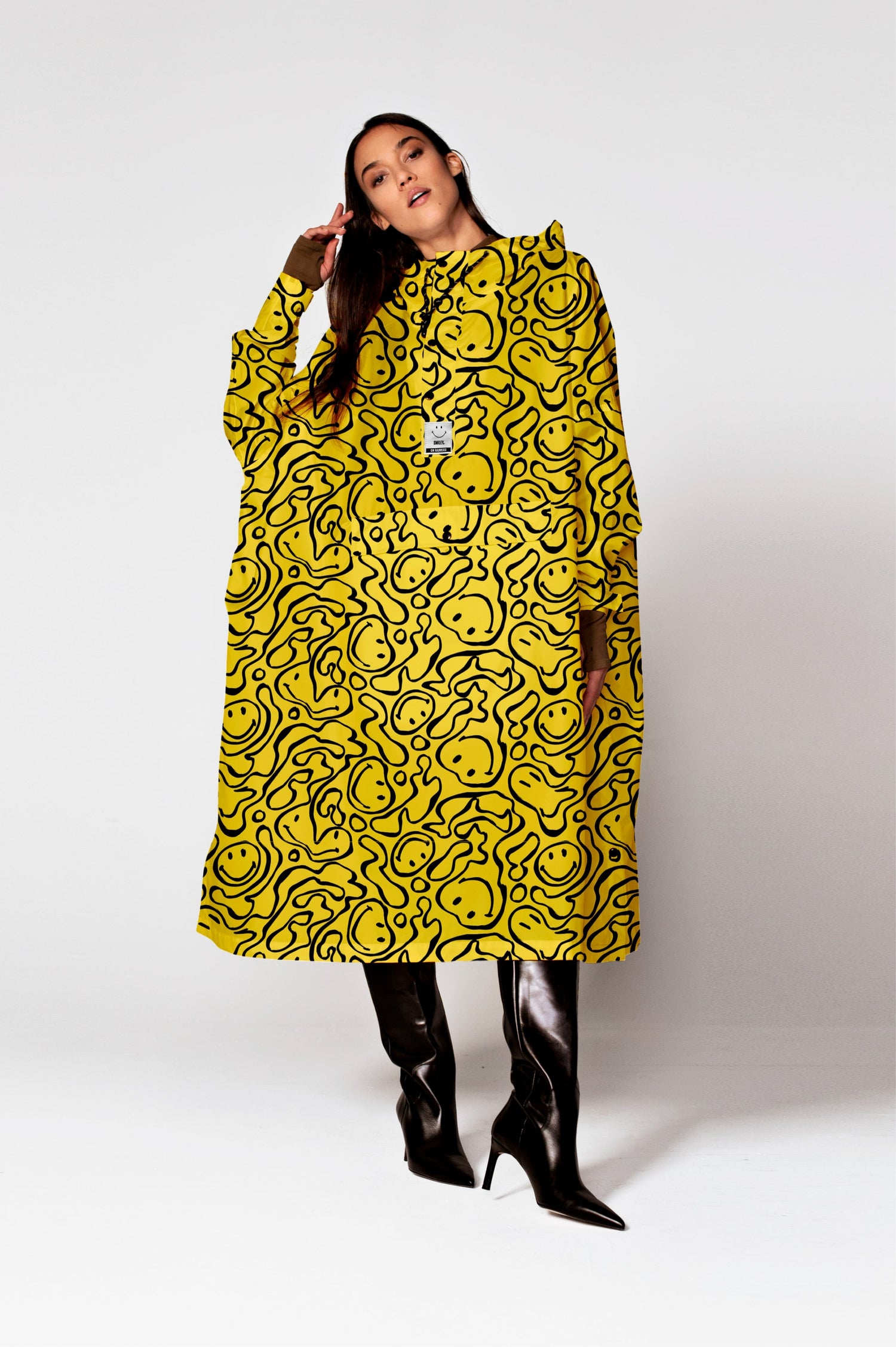 Take a trip in the rain with the Happy Daze rain poncho. Combining the brightest of yellows with a bold mind-bending Smiley print to create the happiest poncho we’ve ever seen. Like the great Pharell once said “Happy as always been yellow for me” and with the Happy Daze rain poncho we couldn’t agree more.