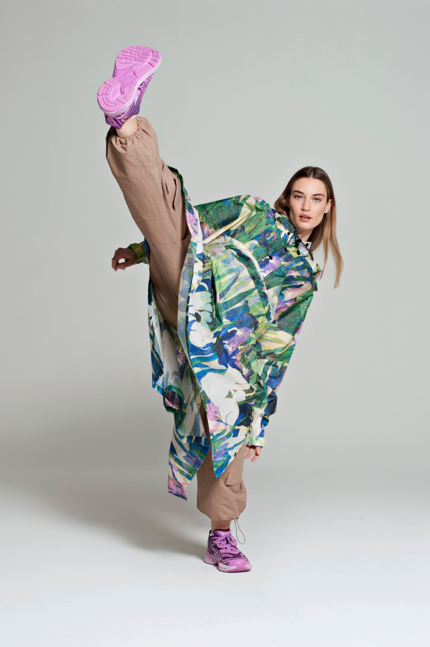 In the 1800’s an art technique was developed called Pointillism which uses small dots to create a distinct image. Since we are some serious art history buffs we had to create a modern design using this amazing art technique. The Lily rain poncho combines a vibrant landscape of Lilies with Pointillism for a design that would even make Van Gogh proud.
